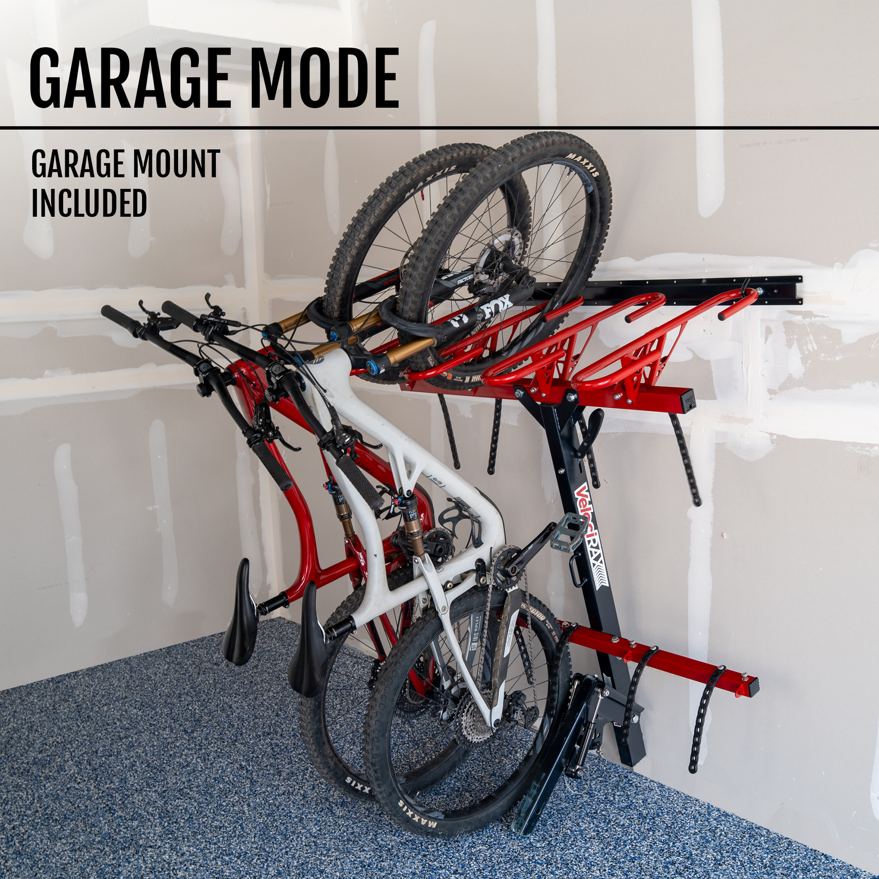 - Garage mount bracket included for rack and bike storage in the garage