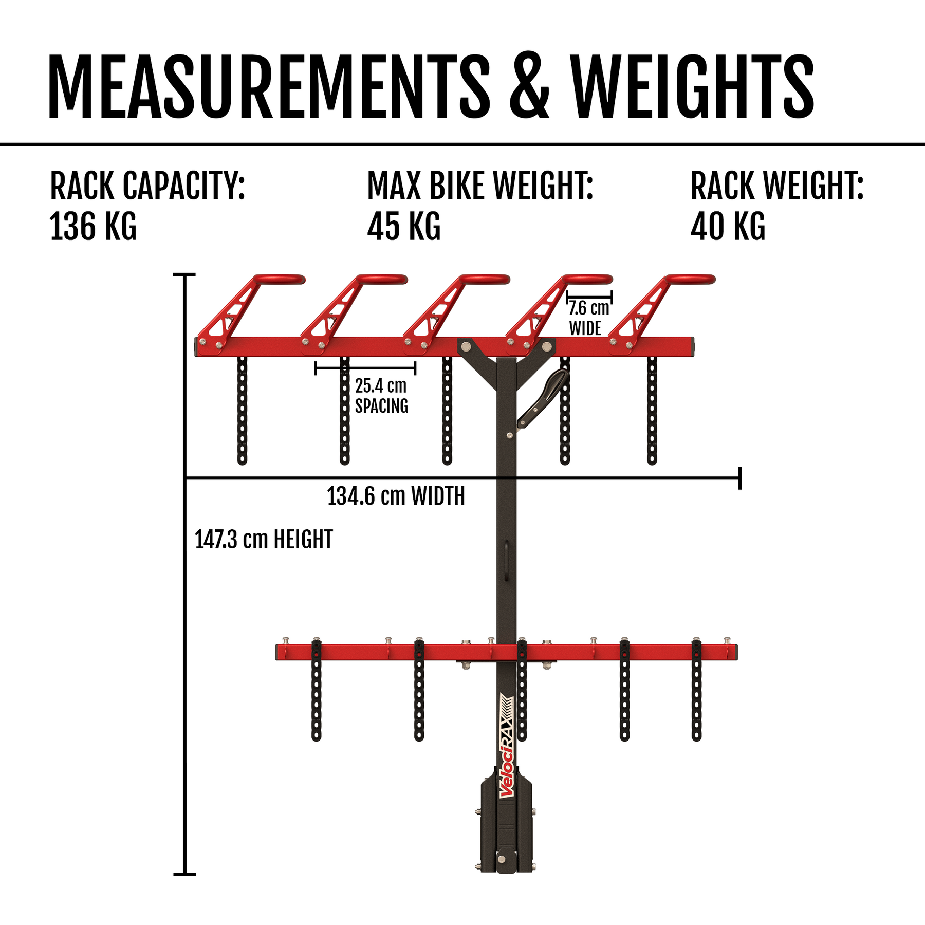 - 136 kg total bike weight max (DO NOT EXCEED - Damage to hitch can result)
