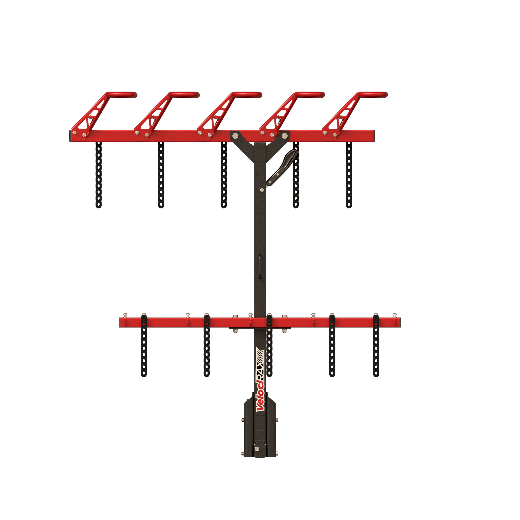 Got a stack of bikes and not a lot of space? The 5 MAX vertical hitch rack is your ticket. With 25 cm between bikes, it’s optimized for mountain bikes and kid haulers. Despite the tighter spacing, you still get 45 kg per tire basket and the full suite of MAX features: damper-assisted lowering, improved release lever, tire-only contact, and garage-ready storage. Big muscle, small footprint—now that’s smart hauling.