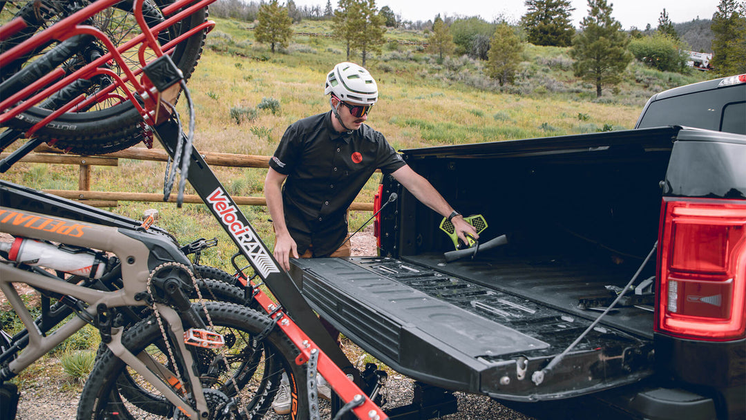 VelociRAX are patent pending with user-friendly features. There is no need to lift bikes onto this rack when using the roll-in and roll-out loading method, which means kids can load their bikes! Integrated hydraulic dampers assist fully loaded racks when lowering to the load position, so don’t worry about bikes crashing down when lowering this rack. All VelociRAX also come with a garage wall mount that can be used to store this rack with bikes when the rack is not on a vehicle.
